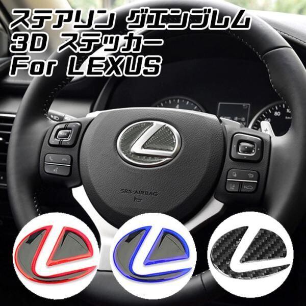 商品名:レクサス ステアリング エンブレム ステッカー タイプ1 全3色 3Dタイプ レッド ブルー カーボン ハンドル ハイブリッド シール LEXUS リアルカーボン