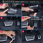 ・ブレーキペダル:純正ペダルカバーを取り外し、製品を被せる。