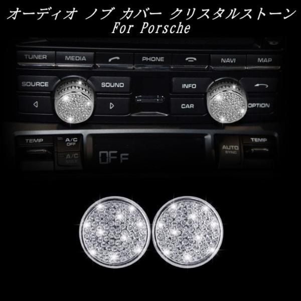 Porsche ポルシェ オーディオ ダイヤル カバー シルバー 2個セット クリスタルストーン トリム ボリューム コントローラー ラインストーン カスタムパーツ