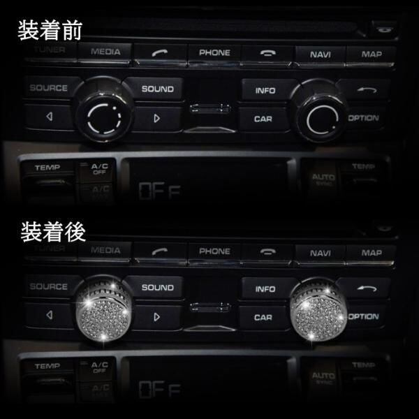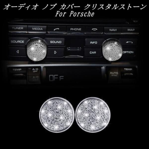 商品名:Porsche ポルシェ オーディオ ダイヤル カバー シルバー 2個セット クリスタルストーン トリム ボリューム コントローラー ラインストーン カスタムパーツ