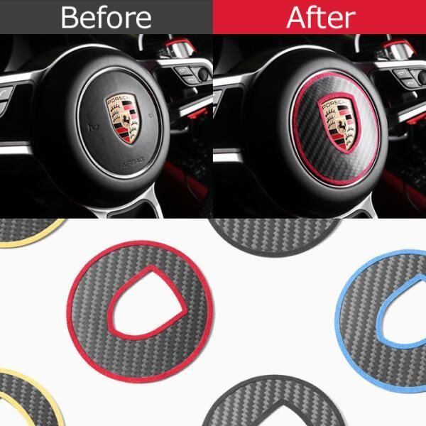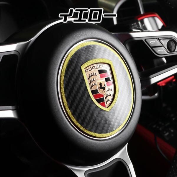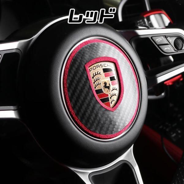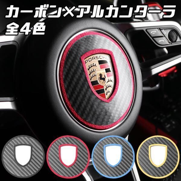 商品名:ポルシェ ステアリング エンブレム カーボン アルカンターラ ステッカー ステアリングエンブレム ホーン アクセサリー カスタム パーツ 内装 ドレスアップ