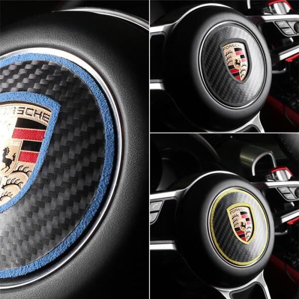 ・ポルシェ用カーボン×アルカンターラのステアリングエンブレムステッカーです。