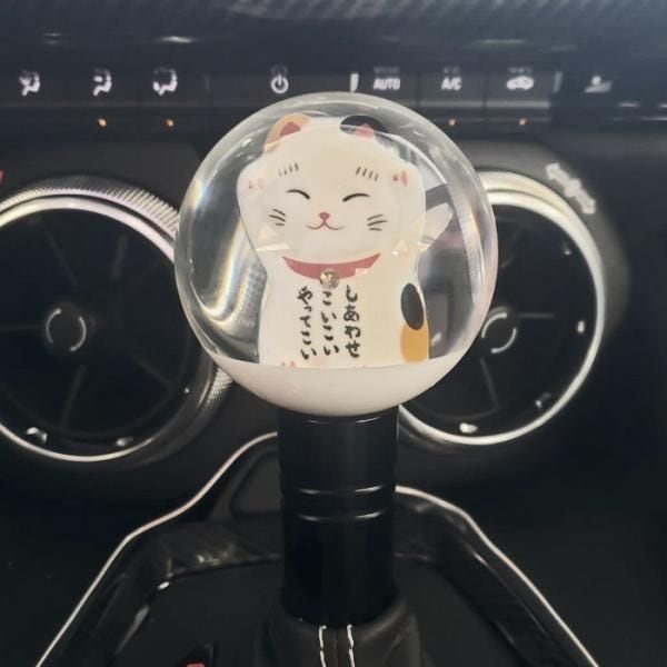 商品名:丸形 シフトノブ 招き猫 まねき猫 おもしろ MT AT マニュアル オートマ ホンダ スズキ トヨタ ダイハツ ニッサン 日産 マツダ ミツビシ 三菱 クリスタル