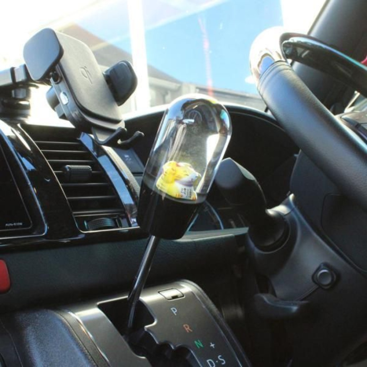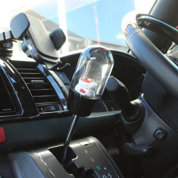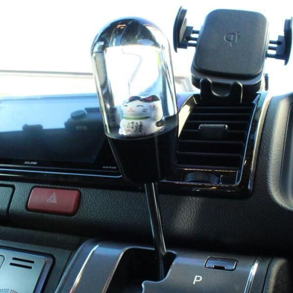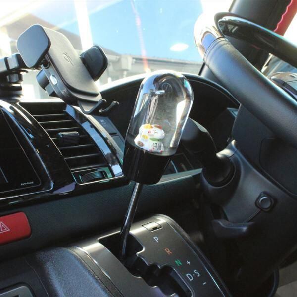 シフトノブ 招き猫 花 9.3cm 変換アダプター付き 汎用 まねきねこ まねき猫 AT MT トラック 大型 車 ジムニー ハイエース GR86 86 BRZ などに おもしろ かわいい | unistarcar