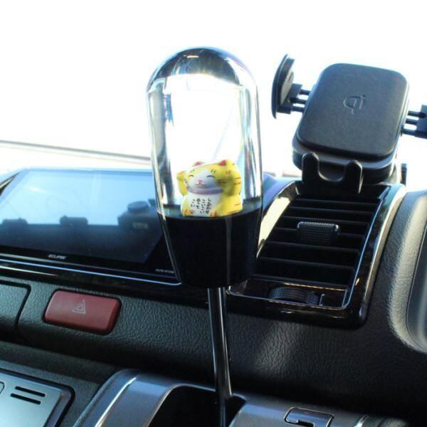 商品名:シフトノブ 招き猫 花 9.3cm 変換アダプター付き 汎用 まねきねこ まねき猫 AT MT トラック 大型 車 ジムニー ハイエース GR86 86 BRZ などに おもしろ かわいい