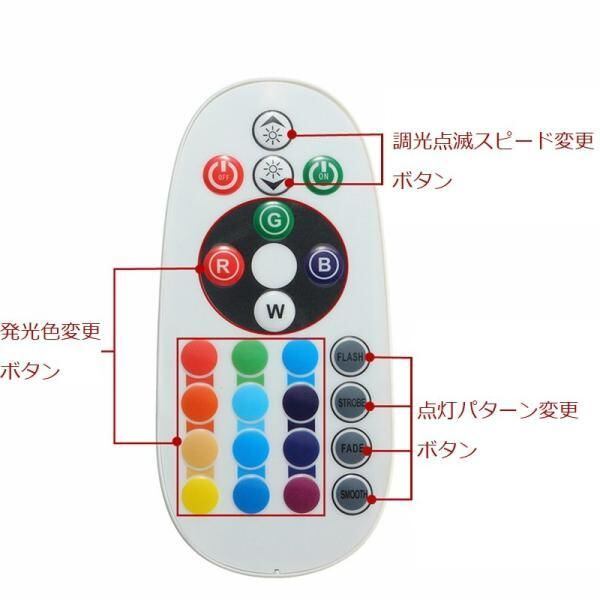 リモコンが付いており、発光色/発光パターンの切り替えが容易に行えます。