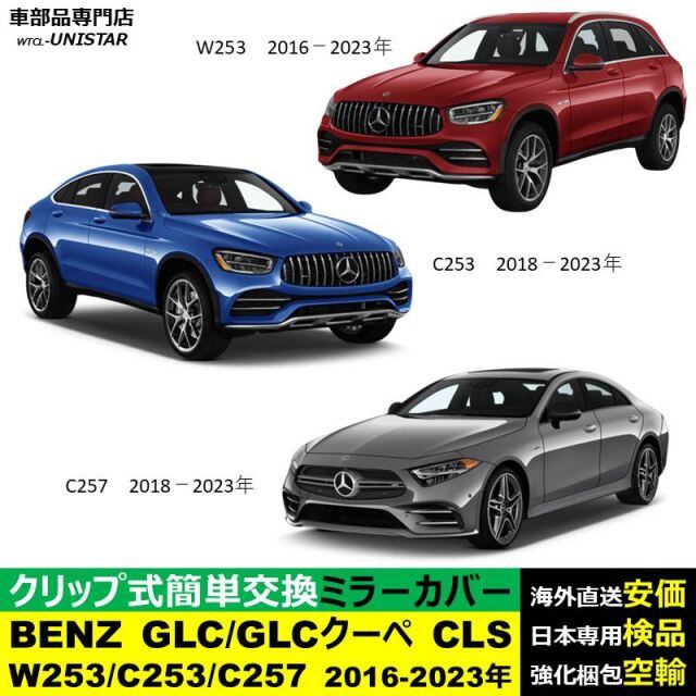 サイドミラーカバー汎用 右ハンドル車 メルセデスベンツ BENZ GLC W253 GLCクーペ C253 CLS C257 2016-2023年 適用 ドレスアップ カバー ドアミラーカバー ABS | unistarcar