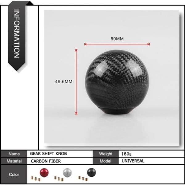 商品名:丸形 カーボン シフトノブ 全3色 MT AT 汎用 変換アダプター付き M8/M10/M12対応 トヨタ ホンダ 日産 マツダ 三菱 スバル