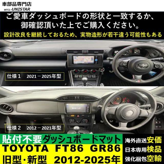 商品名:ダッシュボード マット 汎用 TOYOTA トヨタ FT86 GR86 2012-2025年 適用 マット 反射防止 安全運転 高質PU革 ベルベット製