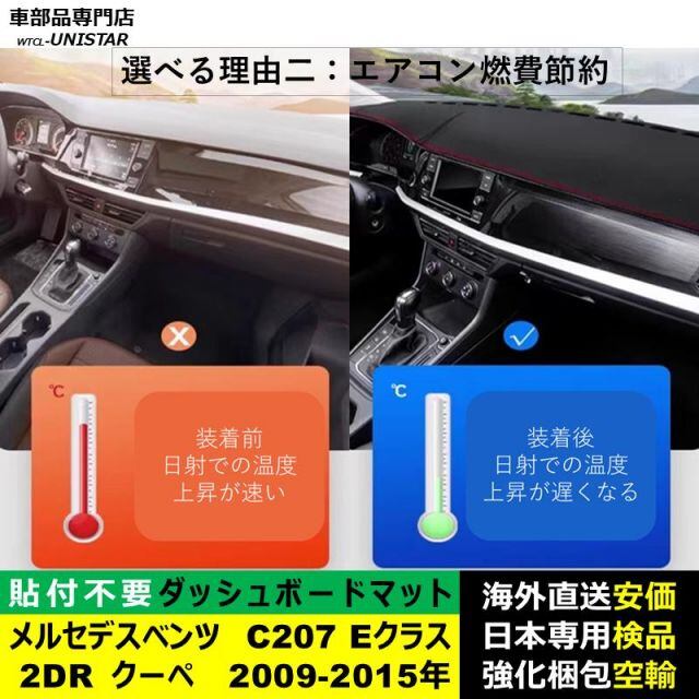 商品名:ダッシュボード マット 汎用 メルセデスベンツ Mercedes-Benz C207 Eクラス 2ドア クーペ 2009-2015年 適用 反射防止 安全運転 高質PU革 ベルベット製