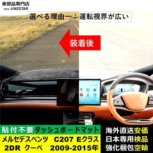 ダッシュボード マット 汎用 メルセデスベンツ Mercedes-Benz C207 Eクラス 2ドア クーペ 2009-2015年 適用 反射防止 安全運転 高質PU革 ベルベット製 | unistarcar