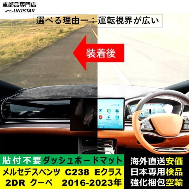 ダッシュボード マット 汎用 メルセデスベンツ Mercedes-Benz C238 Eクラス 2ドア クーペ 2016-2023年 適用 反射防止 安全運転 高質PU革 ベルベット製 | unistarcar