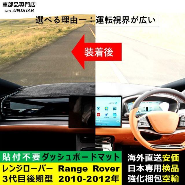 ダッシュボード マット 汎用品 ランドローバー Land Rover レンジローバー Range Rover3代目 後期型 2010-2012年 適用 反射防止 安全運転 高質PU革 ベルベット製 | unistarcar