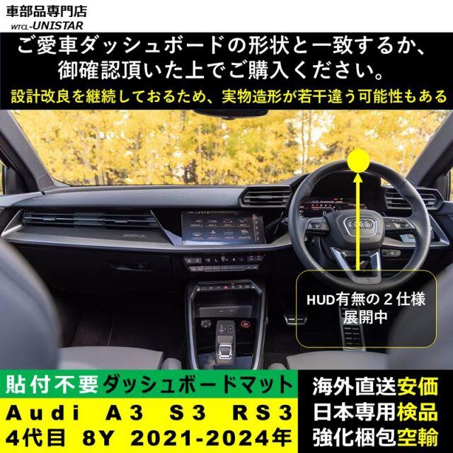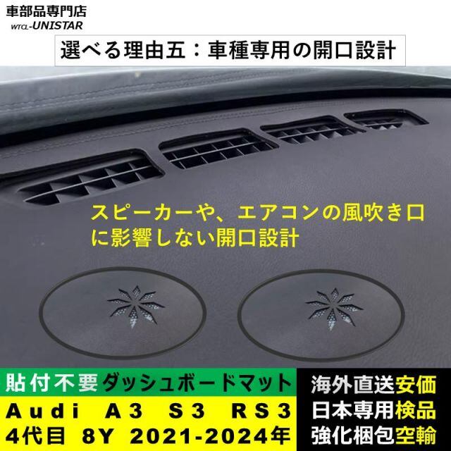 商品名:ダッシュボード マット 汎用品 アウディ Audi A3 S3 RS3 4代目 8Y 2021-2024年 適用 反射防止 簡単取付 安全運転 高質PU革 ベルベット製