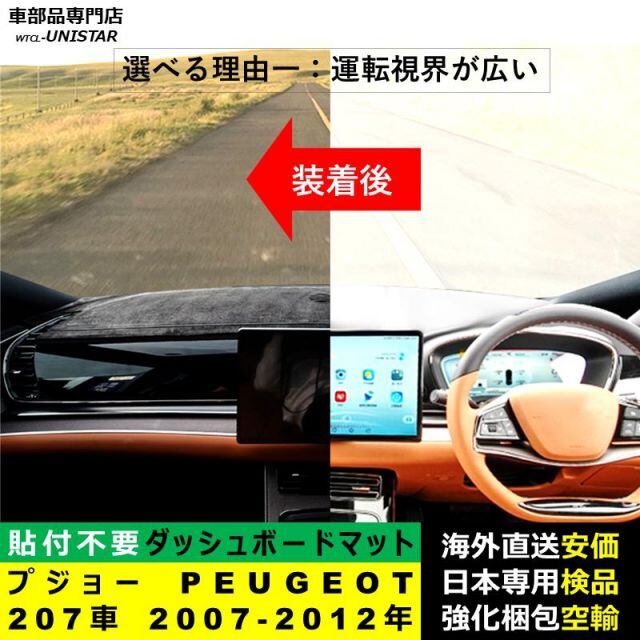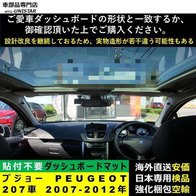 商品名:ダッシュボード マット 汎用品 プジョー PEUGEOT 207車 2007-2012年 適用 反射防止 安全運転 高質PU革 ベルベット製