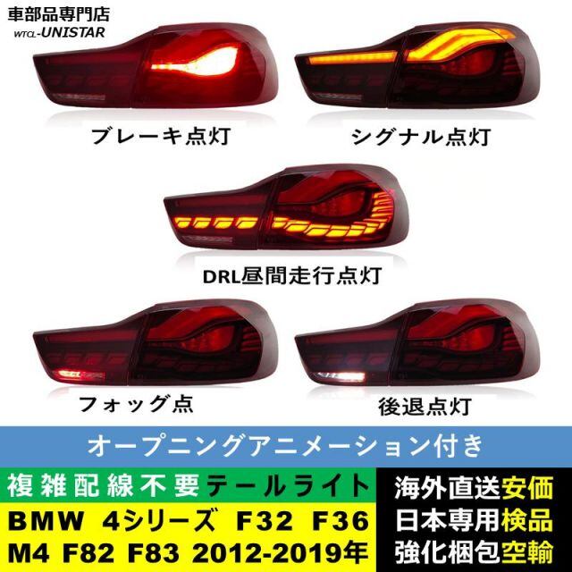 商品名:テールライト 汎用 BMW 4シリーズ F32 F36 M4 F82 F83 2012-2019年 適用 GTS新型化 アップグレード LED アニメーションライト オープニングモーション 付