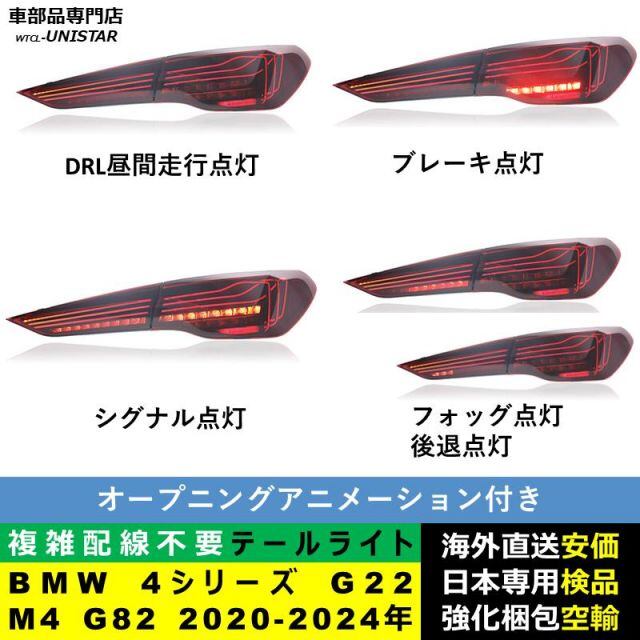 商品名:テールライト 汎用 BMW 4シリーズ G22 M4 G82 2020-2024年 適用 M4 CSL新型化テールライト アップグレード LED アニメーションライト オープニングモーション 付