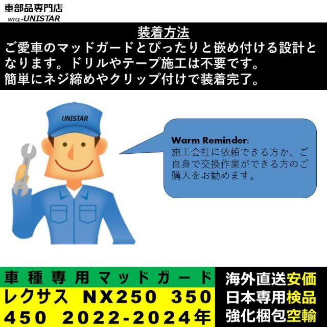 商品名:マッドガード 汎用品 フロント リア ホイール 汚れ防止 LEXUS レクサス NX250 350 450 2022-2024年 適用 DIY 簡単 マッドフラップ フェンダー 1台分