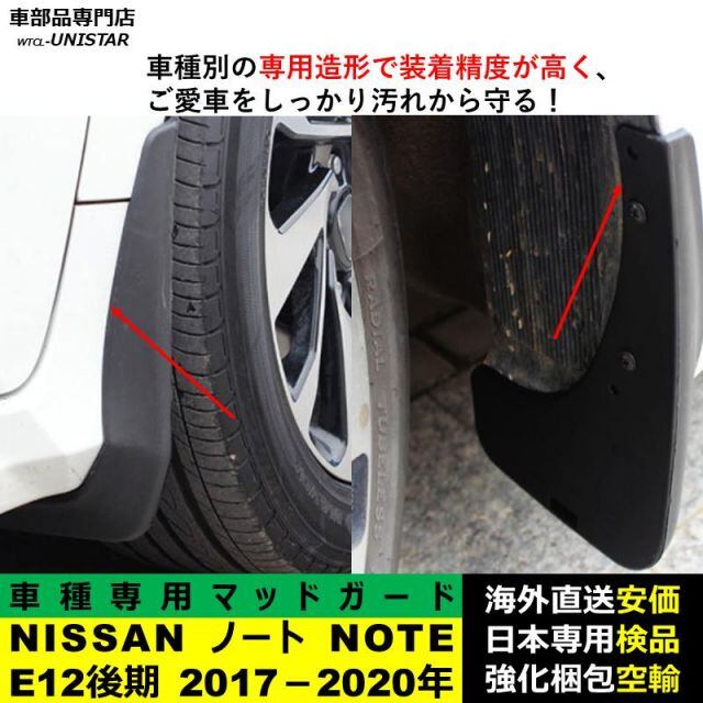 マッドガード マッドフラップ 社外品 NISSAN ノート NOTE E12 改良型 2017-2020年 適用 アクセサリー フロント リア ホイール 汚れ防止 フェンダー 一台分 | unistarcar