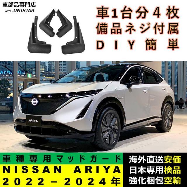 商品名:マッドガード マッドフラップ 社外品 NISSAN ARIYA 2022-2024年 適用 アクセサリー フロント リア ホイール 汚れ防止 フェンダー 一台分セット