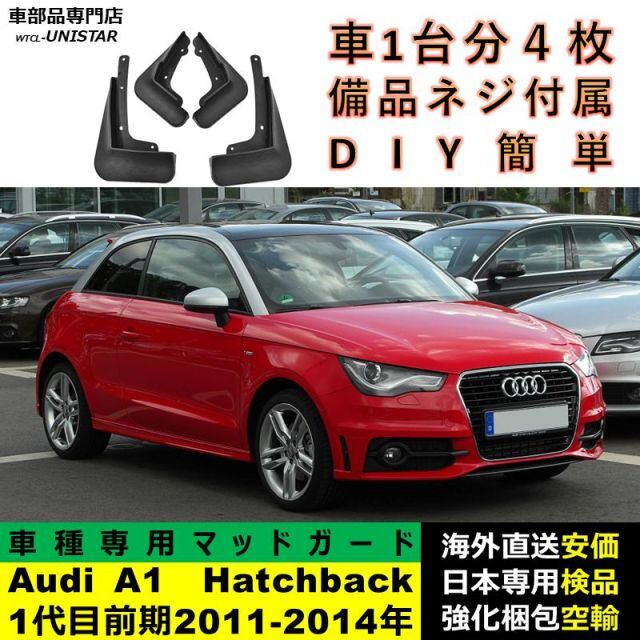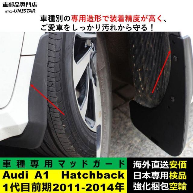 マッドガード 汎用品 フロント リア ホイール 汚れ防止 Audi A1 初代 Hatchback 前期型 2011-2014年 適用 DIY 簡単 マッドフラップ フェンダー 一台分セット | unistarcar
