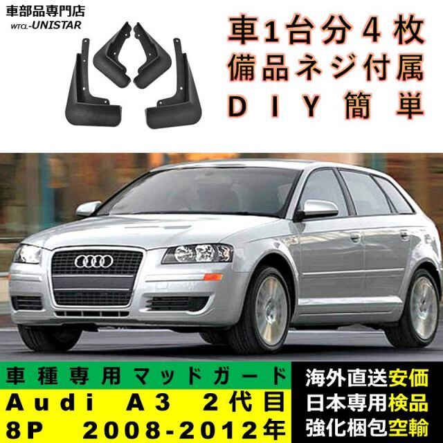商品名:マッドガード 汎用品 フロント リア ホイール 汚れ防止 Audi A3 2代目 8P 2008-2012年 適用 DIY 簡単 マッドフラップ フェンダー 一台分セット