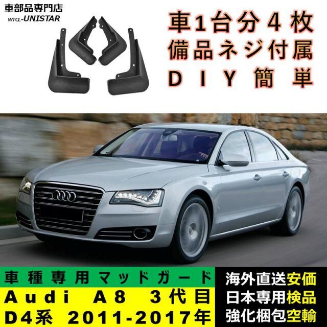 商品名:マッドガード 汎用品 フロント リア ホイール 汚れ防止 Audi A8 3代目 D4系 2011-2017年 適用 DIY 簡単 マッドフラップ フェンダー 一台分セット
