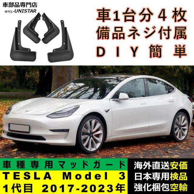 マッドガード フロント リア ホイール 汚れ防止 TESLA テスラ Model 3 2017-2023年 適用 マッドフラップ アクセサリー フェンダー DIY 簡単 シンプル | unistarcar