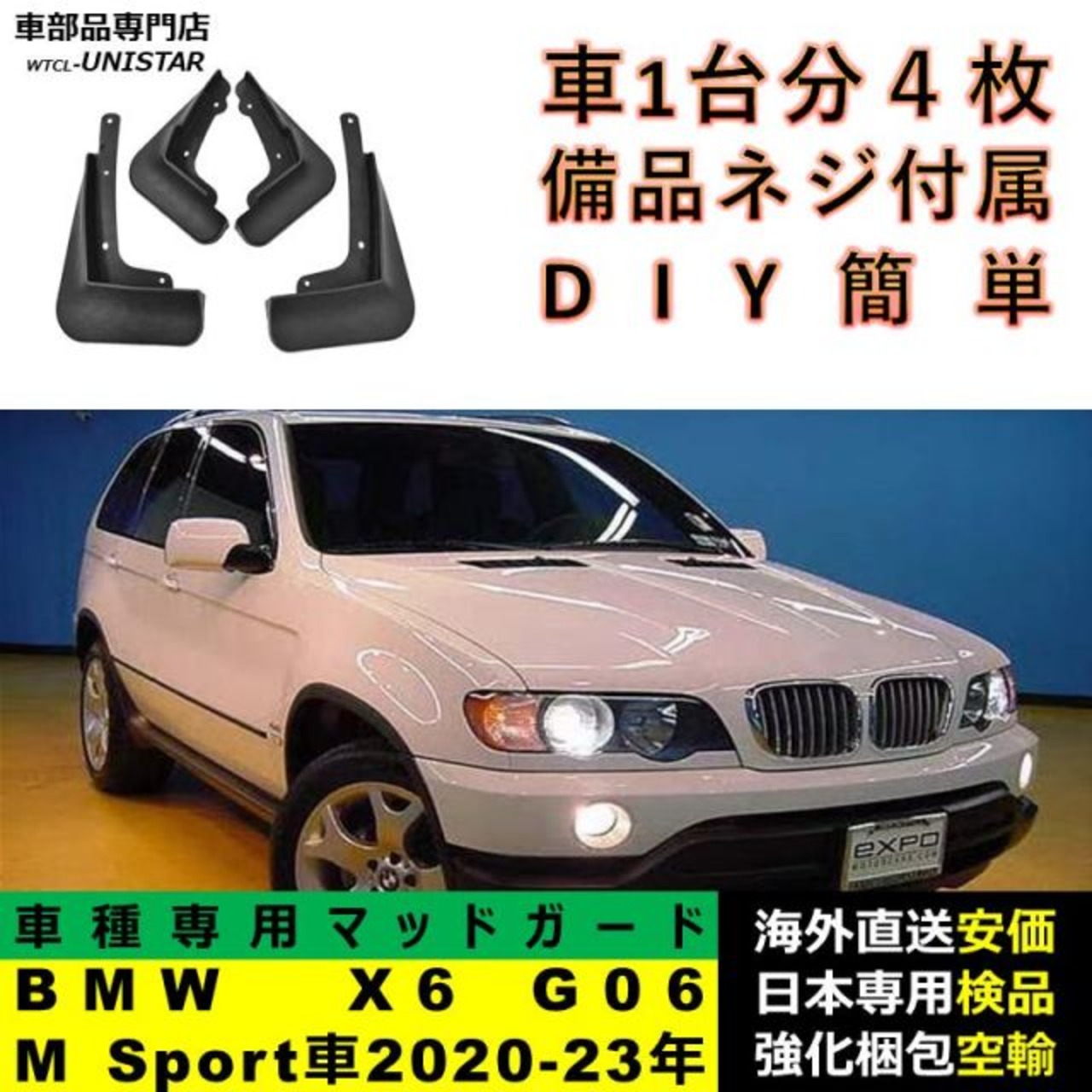 マッドガード フロント リア ホイール 汚れ防止 BMW X6 G06 M Sport車専用 2020-2023年 適用 マッドフラップ アクセサリー フェンダー DIY 簡単 シンプル | unistarcar
