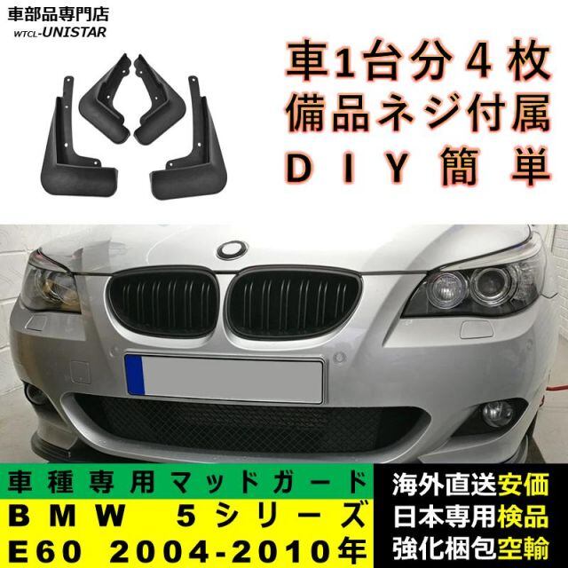 商品名:マッドガード フロント リア ホイール 汚れ防止 BMW 5シリーズ E60 2004-2010年適用 マッドフラップ フェンダー アクセサリー DIY 簡単 シンプル 1台分セット
