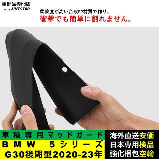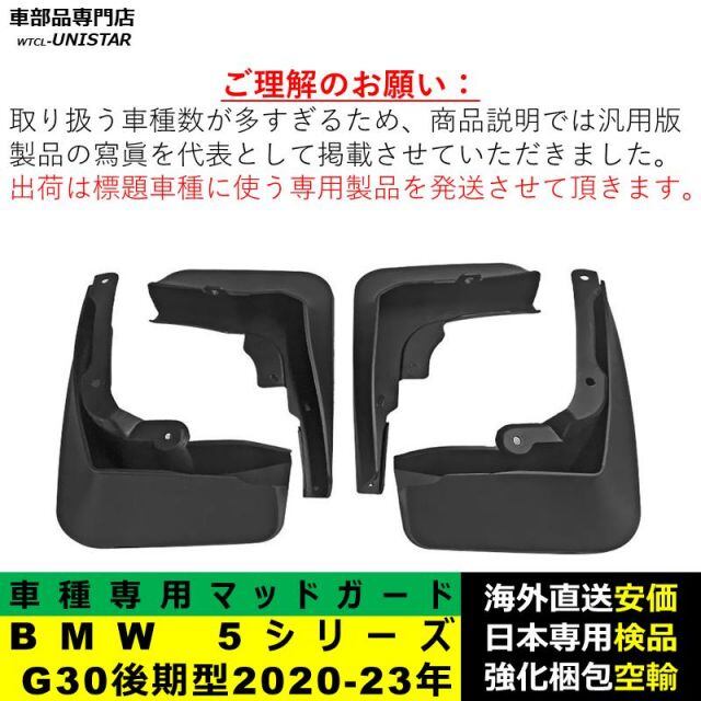 商品名:マッドガード フロント リア ホイール 汚れ防止 BMW 5シリーズ G30 後期型 2020-2023年適用 マッドフラップ アクセサリー フェンダー DIY 簡単 1台分セット