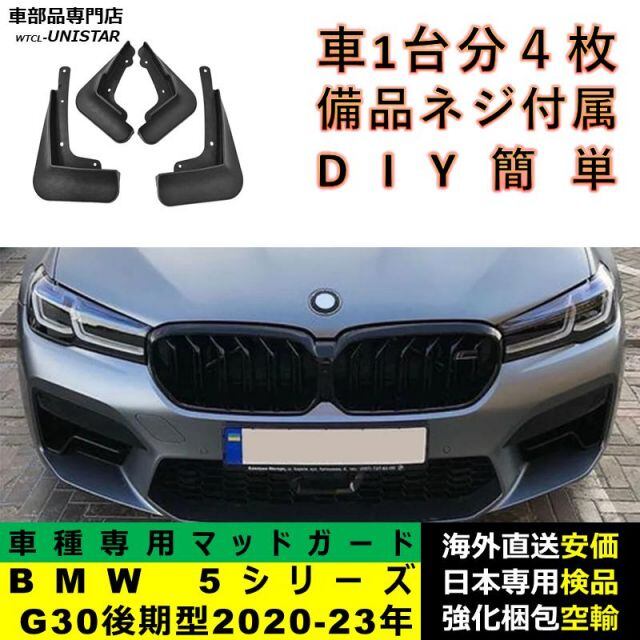 マッドガード フロント リア ホイール 汚れ防止 BMW 5シリーズ G30 後期型 2020-2023年適用 マッドフラップ アクセサリー フェンダー DIY 簡単 1台分セット | unistarcar