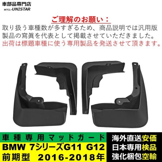 商品名:マッドガード フロント リア ホイール 汚れ防止 BMW 7シリーズ G11 G12 前期型 2016-2018年 適用 マッドフラップ フェンダー DIY 簡単 シンプル 1台分セット