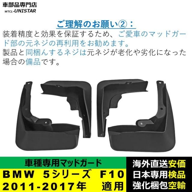 マッドガード フロント リア ホイール 汚れ防止 BMW 5シリーズ F10 2011-2017年 適用 マッドフラップ アクセサリー フェンダー DIY 簡単 シンプル 一台分セット | unistarcar