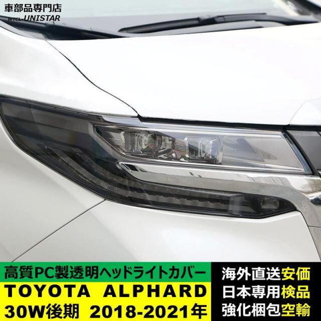 ヘッドライトカバー 汎用品 TOYOTA トヨタ アルファード ALPHARD 30W型 後期型 2018-2021年 適用 ヘッドランプ透明レンズ ランプシェード高質PC製 | unistarcar