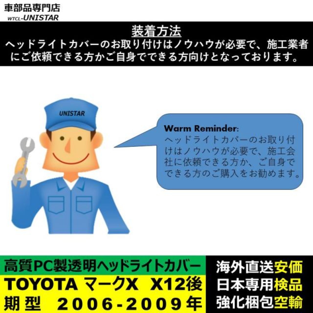 ヘッドライトカバーの取付はノウハウが必要です。施工業者にご依頼できるお客様向けとなっております。