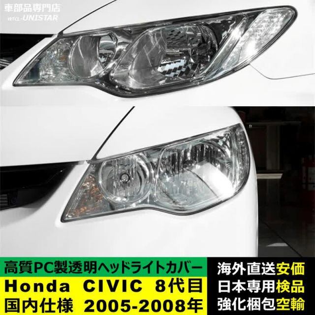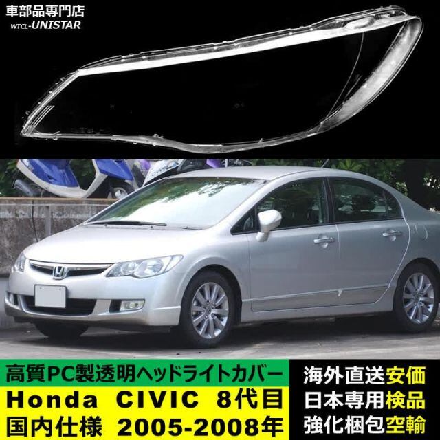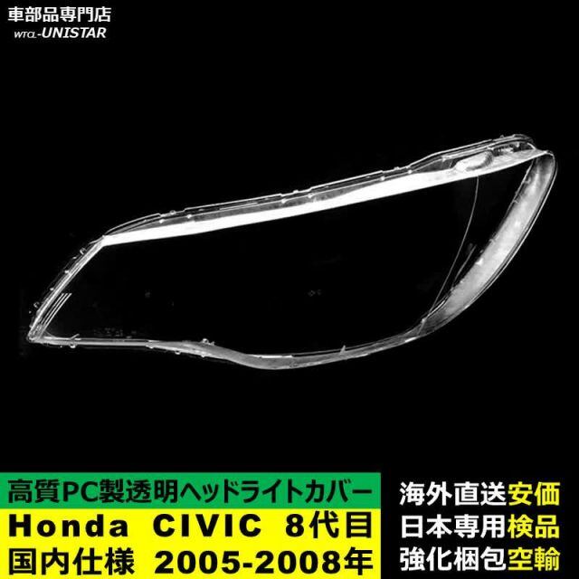 ヘッドライトカバー Honda ホンダ CIVIC シビック 8代目国内仕様 2005-2008年 適用 ヘッドライトカバー ヘッドランプ透明レンズ ランプシェード高質PC製 | unistarcar