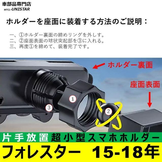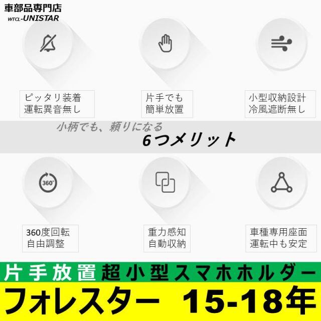スマホホルダー SUBARU スバル 専用 FORESTER フォレスター 2015-2018年 簡単取付 吹出口 小型 重力感知 ハンズフリー 収納 車種専用座面 安全運転 UM1081-13 | unistarcar