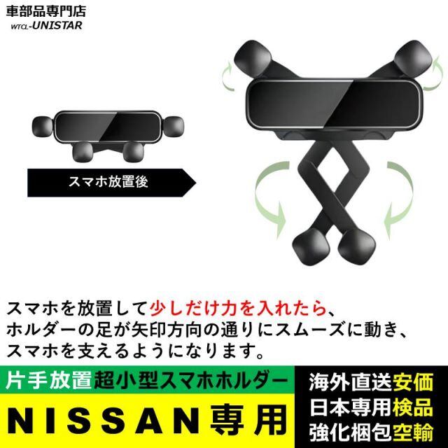 商品名:スマホホルダー NISSAN専用 エクストレイル X-Trial T32 T33 簡単取付 吹出し口 小型 重力感知 ハンズフリー 収納 車種専用座面 安全運転