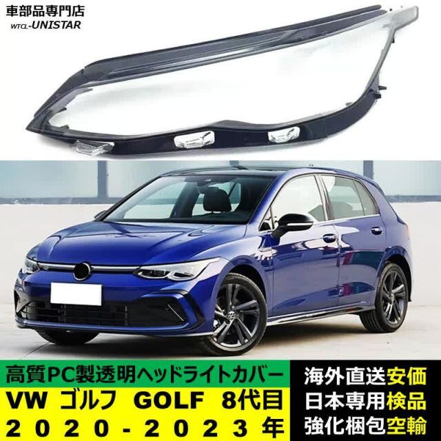 商品名:フォルクスワーゲン VW ゴルフ GOLF 8代目 2020-2023年 適用 ヘッドライトカバー ヘッドランプ透明レンズ ランプシェード高質PC製