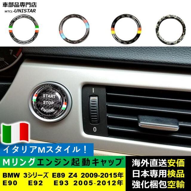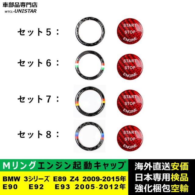 BMW 3シリーズ E90 E92 E93 2005‐2012年 E89 Z4 2009-2015年 適用 エンジン スタートボタン カバー+炭素繊維リングカバー 2個セット DIY おしゃれ | unistarcar
