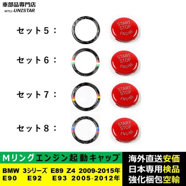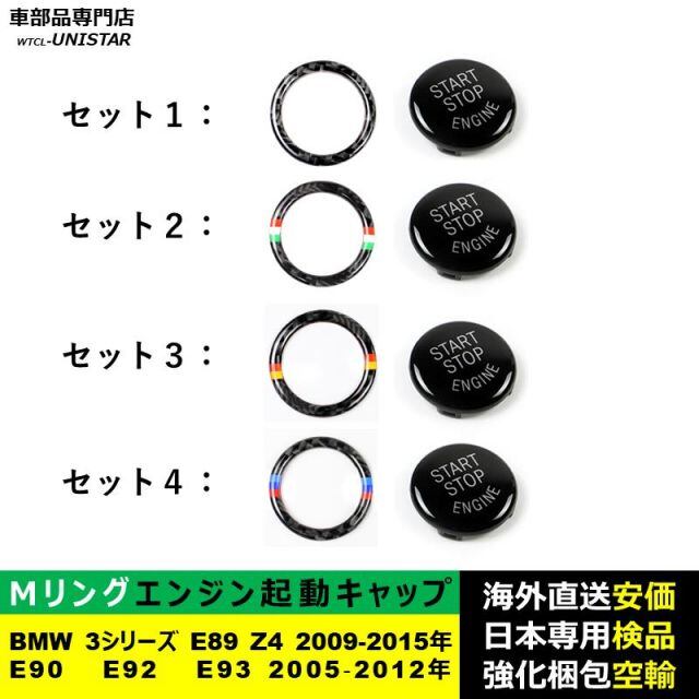 BMW 3シリーズ E90 E92 E93 2005‐2012年 E89 Z4 2009-2015年適用 エンジン スタート ボタンカバー+炭素繊維リング 2個セット ABS製カバー | unistarcar