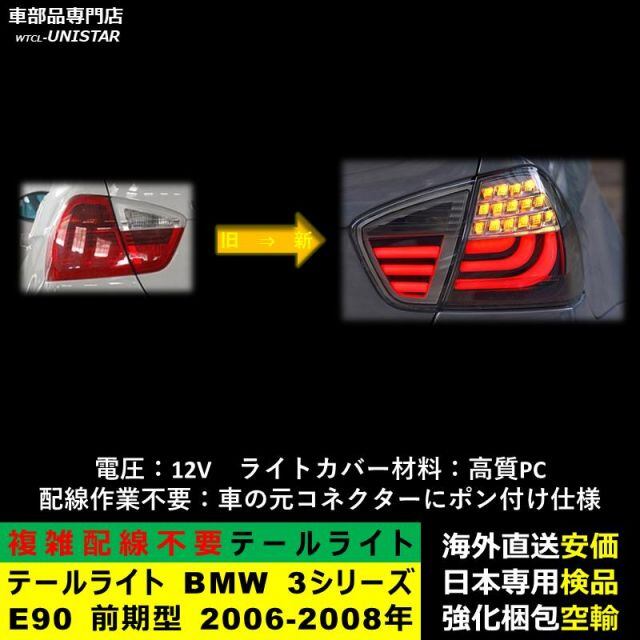 テールライト 汎用品 BMW 3シリーズ E90 前期型 2006-2008年 適用 新型化 アップグレード LED アニメーションライト オープニングモーション 付き