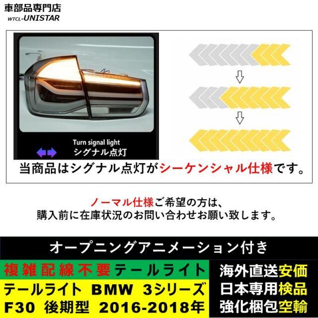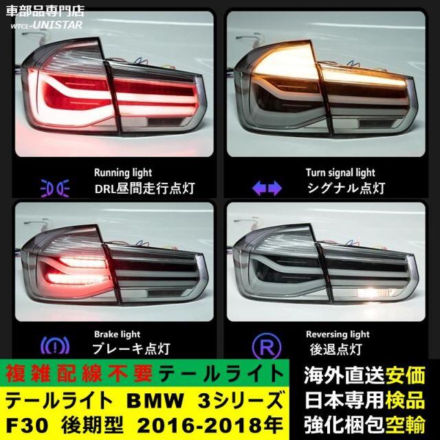 商品名:テールライト 汎用品 BMW 3シリーズ F30 後期型 2016-2018年 適用 新型化 アップグレード LED アニメーションライト オープニングモーション 付き