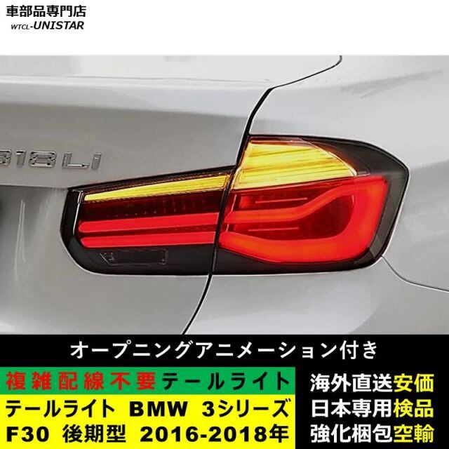 テールライト 汎用品 BMW 3シリーズ F30 後期型 2016-2018年 適用 新型化 アップグレード LED アニメーションライト オープニングモーション 付き