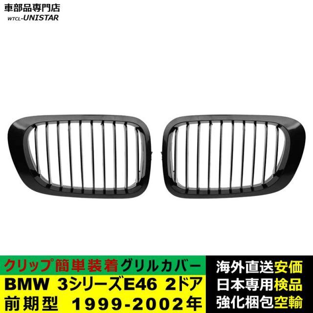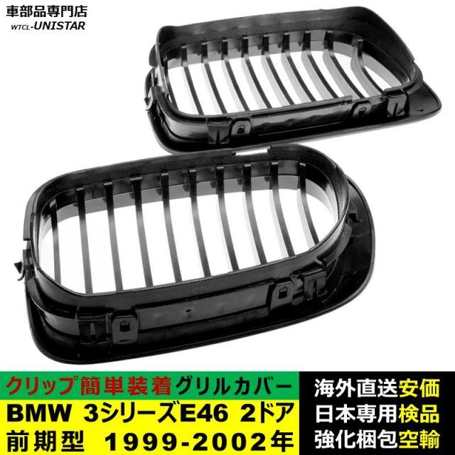 BMW 3シリーズ E46 2ドア 前期型 1999-2002年適用 フロントグリル キドニーグリル バンパー トリム カバー スラット ストラップ Mスタイル M Sports Mスポーツ | unistarcar