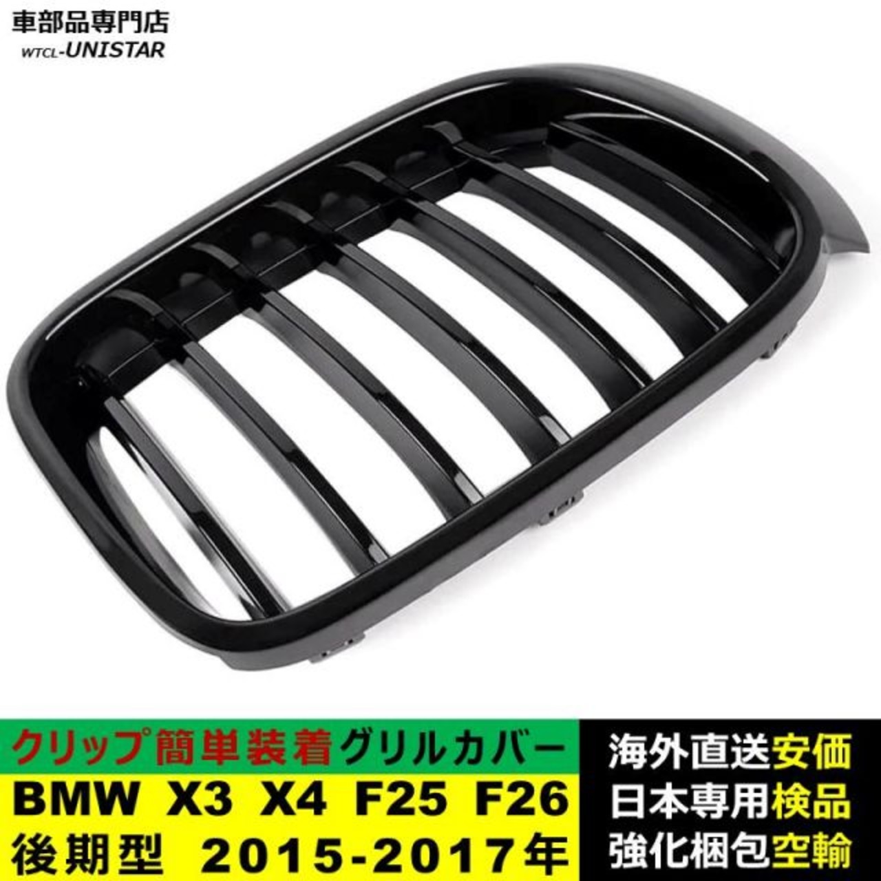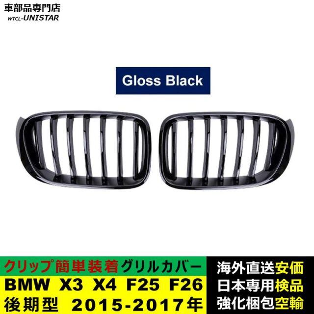 BMW X3 X4 F25 F26 後期型 2015-2017年適用 フロントグリル キドニーグリル バンパー トリムカバー スラット ストラップ Mスタイル M Sports Mスポーツ ABS製 | unistarcar