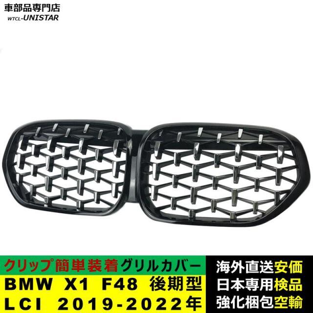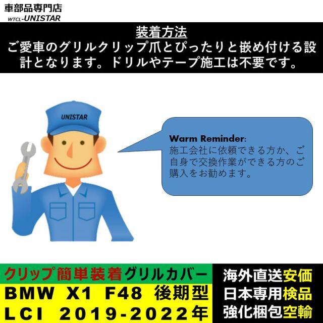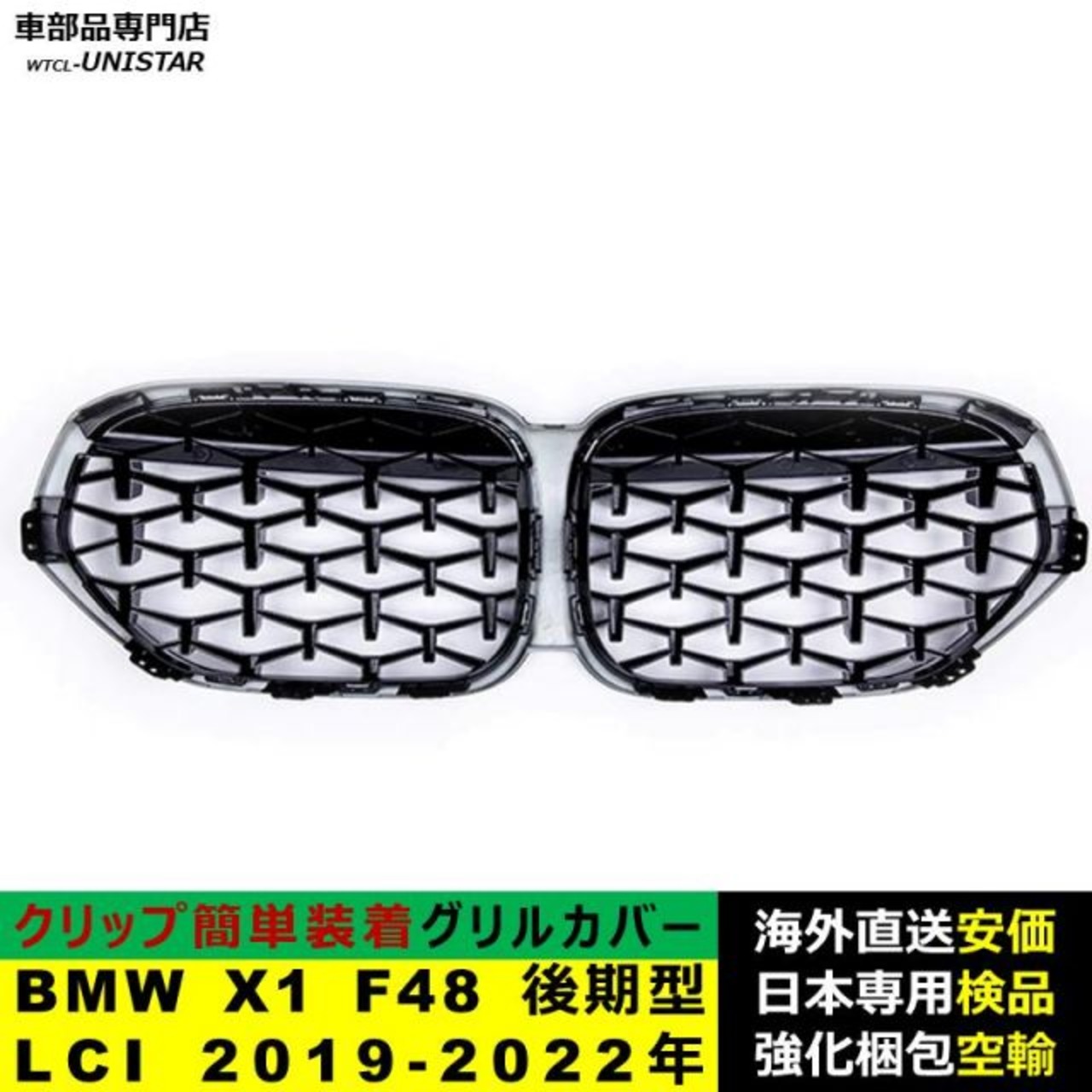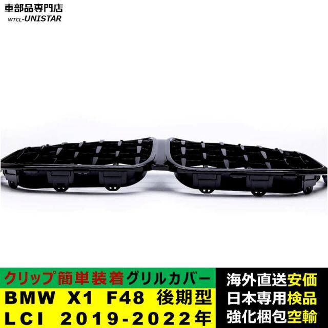 BMW X1 F48 後期型LCI 2019-2022年適用 フロント グリル キドニーグリル バンパー トリム カバー スラット ストラップ Mスタイル M Sports Mスポーツ ABS製 | unistarcar
