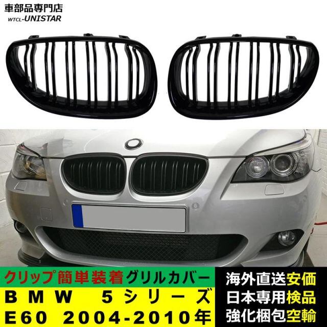 BMW 5シリーズ E60 2004-2010年適用 フロントグリル キドニーグリル バンパー トリム カバー スラット ストラップ Mスタイル MSports Mスポーツ ABS製 | unistarcar