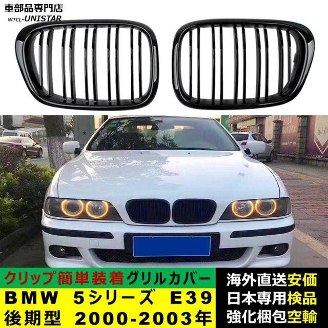 BMW 5シリーズ E39 後期型 2000-2003年適用 フロントグリル キドニーグリル バンパー トリム カバー スラット ストラップ Mスタイル M Sports Mスポーツ ABS製 | unistarcar